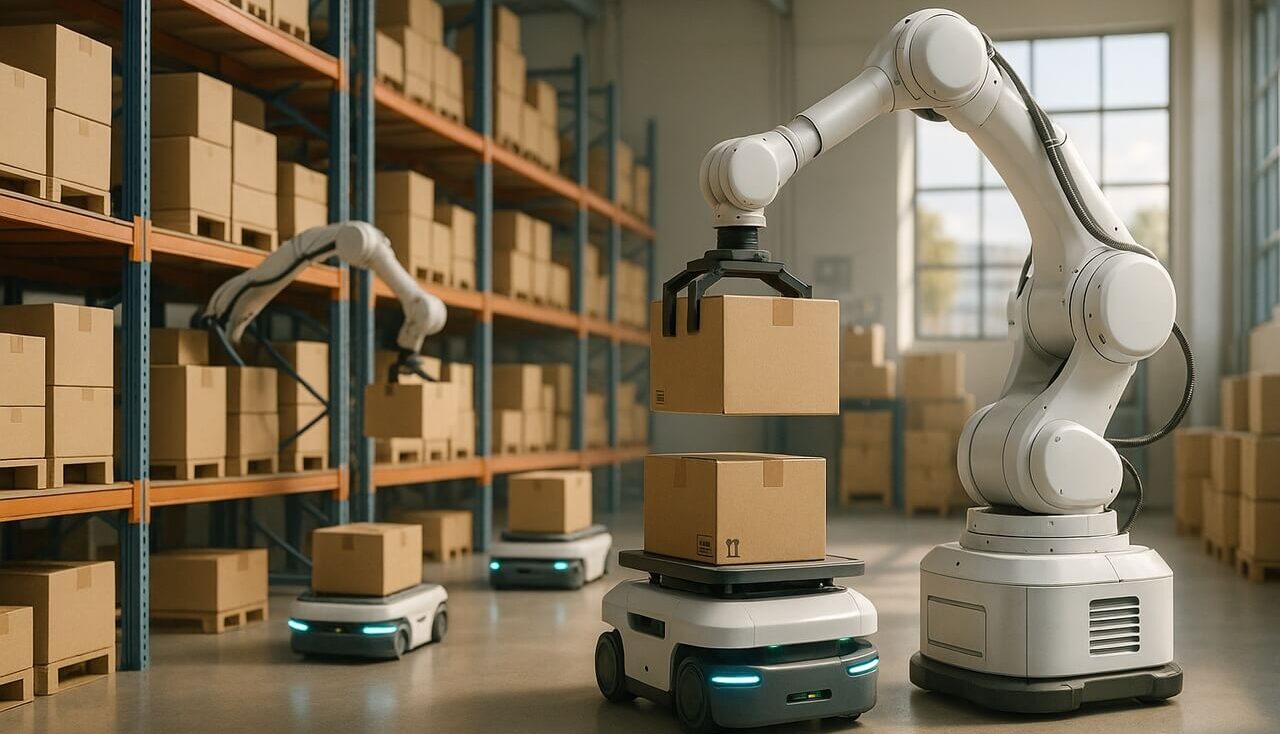 Predstavte si sklad, kde roboty prechádzajú uličkami, uchopujú predmety, presúvajú palety/náklad/balíky a sledujú zásoby – to všetko bez prestávky. To sú skladové roboty v akcii. Sú srdcom robotiky automatizácie skladov, premieňajú pomalé manuálne procesy na rýchle a inteligentné operácie a zároveň zabezpečujú bezpečnosť vo vnútri zariadenia.