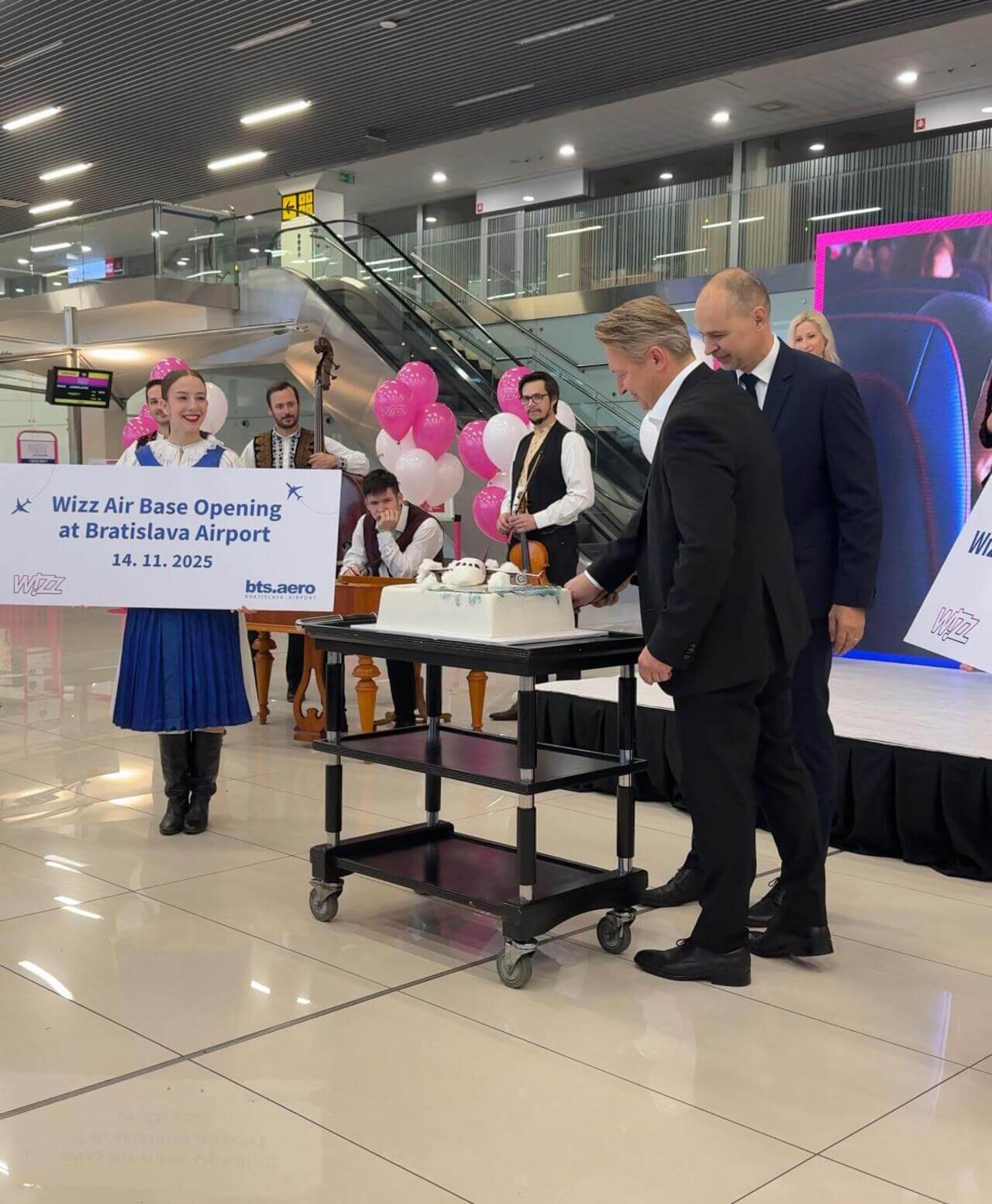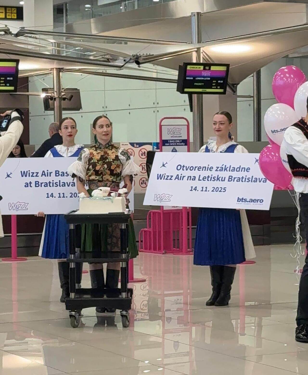 Základňa leteckého dopravcu Wizz Air na Letisku M. R. Štefánika v Bratislave je už otvorená! Slávnostné otvorenie „bázy“ Wizz Air v odletovej hale bratislavského letiska sprevádzalo v piatok 14. novembra odpočítavanie, prestrihnutie pásky, rozkrojenie torty v tvare lietadla aj vystúpenie folklórneho súboru.