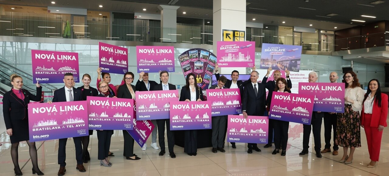 Deväť nových leteckých liniek len v marci, ďalšie tri do letných prázdnin. Celkovo 16 úplne nových leteckých spojení pridáva letecký dopravca Wizz Air v roku 2026 s odletom z Letiska M. R. Štefánika, na ktorom si v týchto dňoch pripomína 10. výročie svojho pôsobenia. Nové letecké linky uviedli na bratislavskom letisku zástupcovia veľvyslanectiev krajín, do ktorých nové letecké spojenia smerujú.