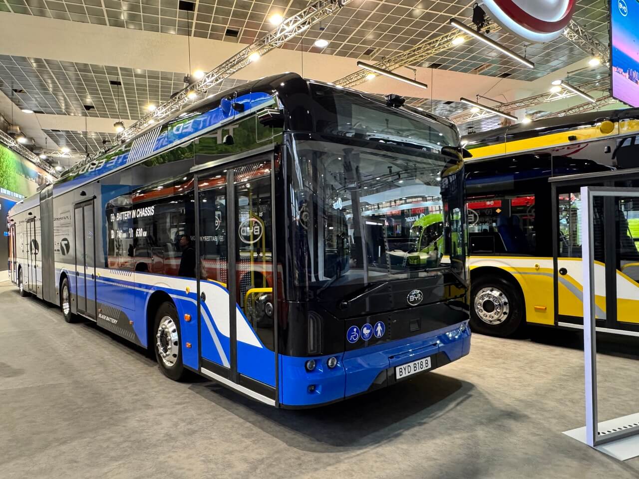 BYD bol síce v katalógu vedený ako európska značka, ktorá oznámila rozšírenie výroby v maďarskom Komárome na viac ako 1 000 autobusov ročne a otvorenie prvého servisného a batériového strediska v Spojenom kráľovstve, ale stále ide o čínsku značku. Do Bruselu priviezla tri nové elektrické autobusy: model B12.b LE (Low Entry), určený pre prímestskú dopravu, a B12.b HF (High Floor) pre medzimestskú a turistickú prevádzku. Oba spája batérie s kapacitou až 495 kWh a dojazd až 650 km. Tretia novinka B18.b je 18 m kĺbový autobus pre až 146 cestujúcich, disponujúci 746 kWh batériou a dojazdom až 630 km. Vozidlo môže byť vybavené pohonom všetkých kolies.