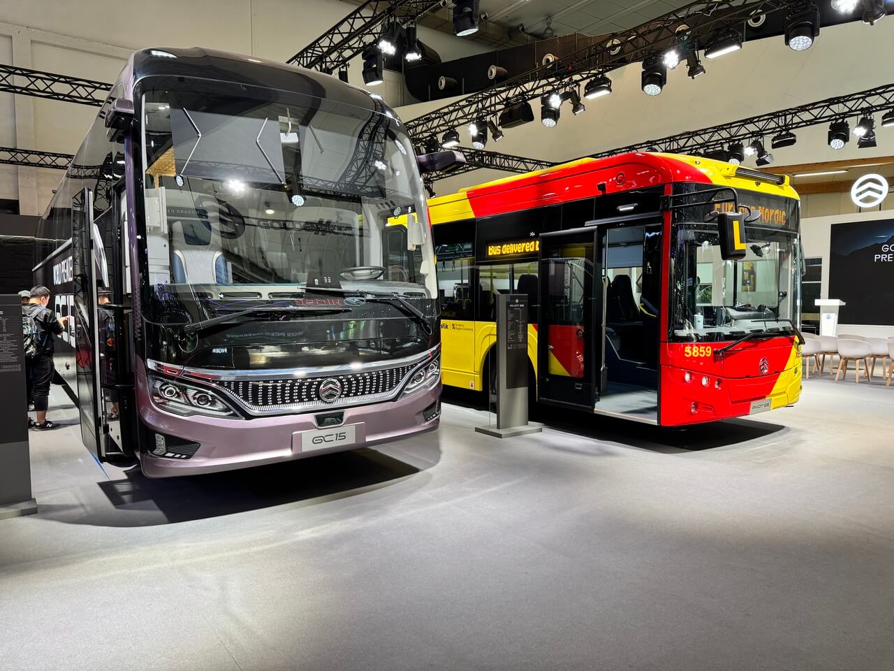 Golden Dragon ukázal luxusný 15 m e-coach GC15 s dvojicou elektromotorov s výkonom 500 kW a batériou s kapacitou 704 kWh, zaisťujúcou dojazd až 600 km. Druhou novinkou bol 15 m mestský elektrobus Pivot E15 s kapacitou 51 sediacich cestujúcich.