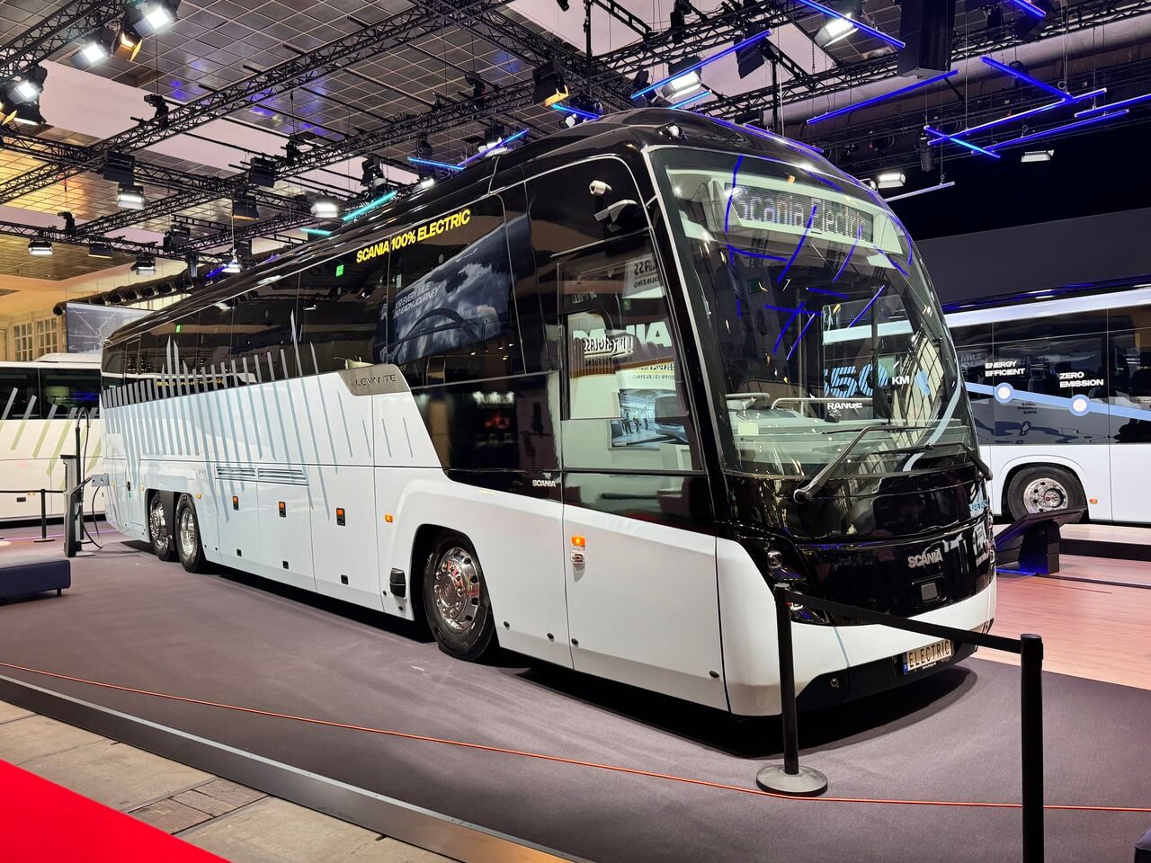 Scania prekvapila elektrickým coachom, v ktorom predstavila svoju high-floor batériovú platformu s elektromotorom s výkonom až 330 kW a využiteľnou kapacitou batérií až 480 kWh s možnosťou rýchlonabíjania výkonom 325 kW. Dojazd vozidiel má dosiahnuť až 600 km. Nadstavbu na trojnápravový podvozok dodal Caetano.