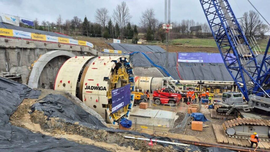„Kinga” začala práce ako prvá a bola zodpovedná za evakuačný tunel, ktorý bude zohrávať kľúčovú úlohu z hľadiska bezpečnosti a technickej prevádzky celej infraštruktúry. Súčasne väčší stroj TBM, „Jadwiga”, razí hlavný železničný tunel, pričom zhotoviteľ dosiahol výnimočný výsledok – 46,02 metra (23 kusov tunelovej výstuže) za jeden deň, čím stanovil nový rekord a výrazne prekonal predchádzajúce denné maximum 32 metrov. Na porovnanie, priemerné tempo razenia bolo dovtedy približne 11 metrov denne, čo podčiarkuje rozsah tohto úspechu. Na dokončenie hlavného tunela zostáva ešte 672 metrov.