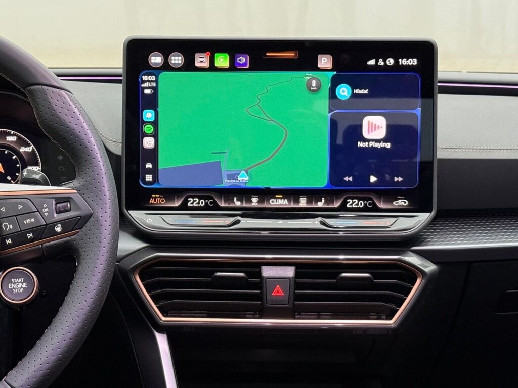 Najväčšou zmenou je 12,9″ infotainment s novým rozhraním a podsvietenými dotykovými lištami. Systém reagoval rýchlo a CarPlay aj Android Auto fungovali bez problémov. Digitálny prístrojový štít má prehľadnejšie zobrazenie a lepšie animácie.