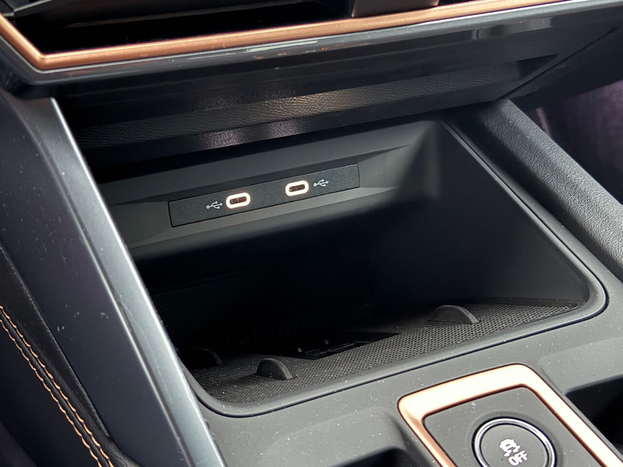 Kompaktný volič DSG uvoľnil viac odkladacieho priestoru. Ovládanie klimatizácie ostáva kombináciou podsvietených líšt a rýchlych volieb na displeji. USB-C konektory sú vpredu aj vzadu po dvoch.