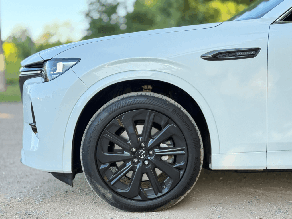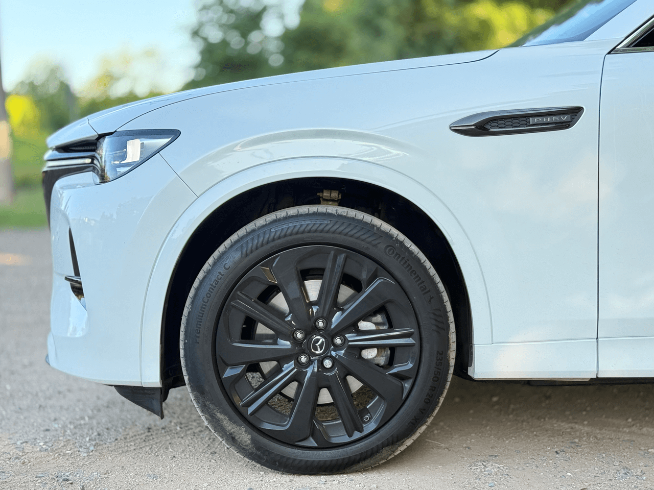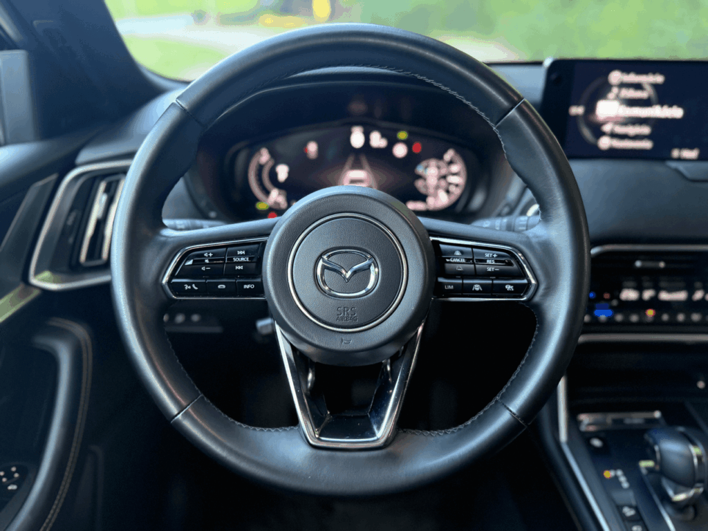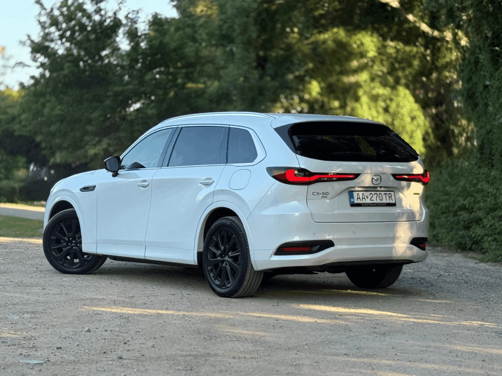 Rozjazdy boli plynulé, reakcia na plyn takmer okamžitá. V režime EV sme dokázali prejsť približne 50 kilometrov bez zapojenia spaľovacieho motora. Keď bolo treba výkon, oba agregáty spolupracovali bez zaváhania – zrýchlenie z 0 na 100 km/h trvá 6,8 s a maximálna rýchlosť je obmedzená na 195 km/h. Vďaka zadne orientovanej architektúre mala CX-80 prirodzene vyvážené správanie – v zákrutách pôsobila istým dojmom a podvozok spoľahlivo tlmil nerovnosti. Napriek viac ako dvojtonovej hmotnosti jazdilo auto pokojne, ticho a s istotou, ktorá je pre Mazdu typická.