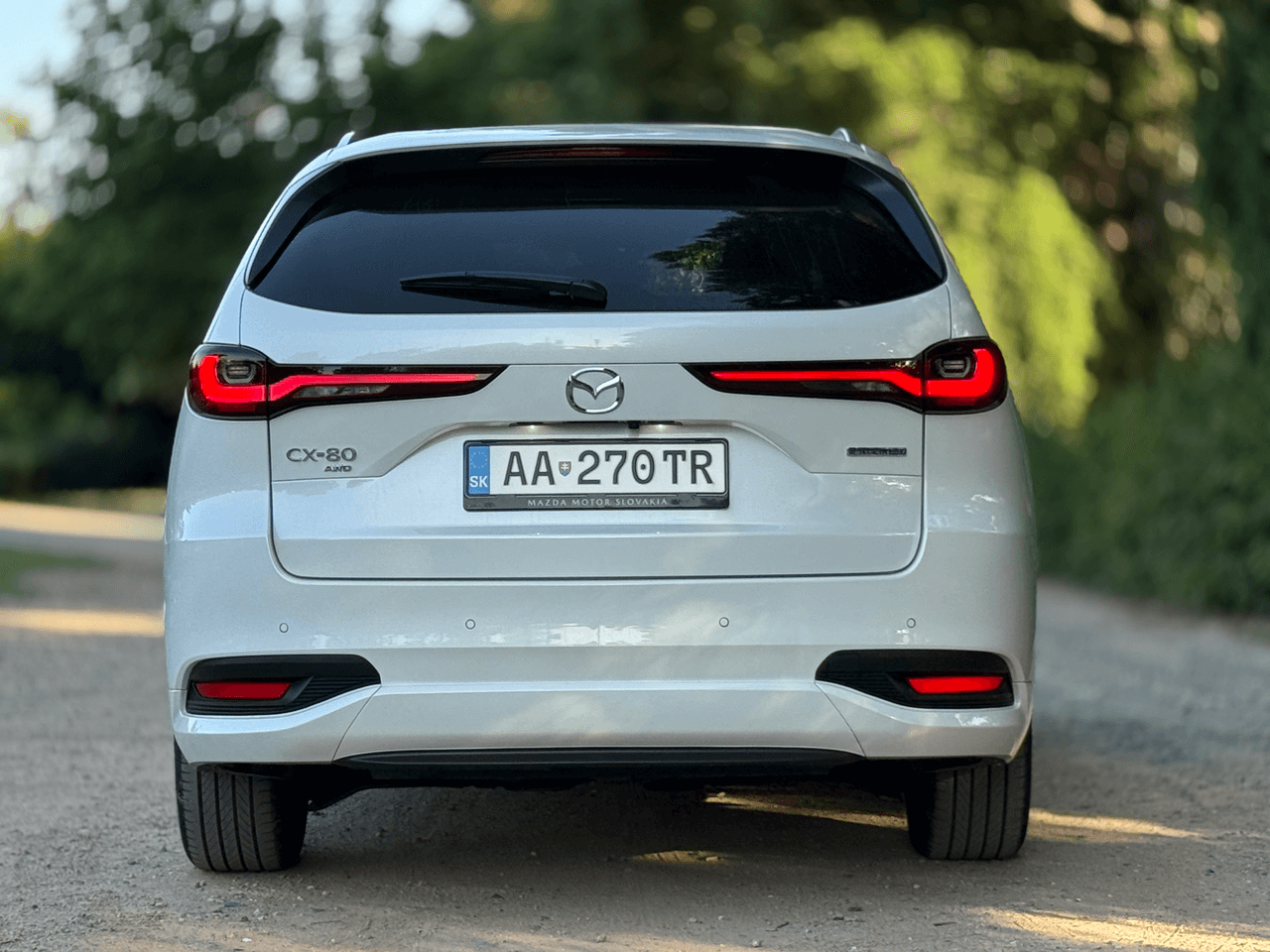 Oproti CX-60 je CX-80 dlhšia o 250 mm, čo prinieslo priestor pre tretí rad sedadiel a novú úroveň priestrannosti, akú Mazda doteraz v Európe neponúkala. Značka tým potvrdzuje, že sa nebojí ísť proti prúdu – v čase, keď väčšina výrobcov prechádza na čisto elektrické modely, Mazda stavia na technicky prepracovanom plug-in hybride s klasickým benzínovým motorom. Výsledkom je SUV, ktoré spája úspornosť, ticho a charizmu so známou „dušou Mazdy“.